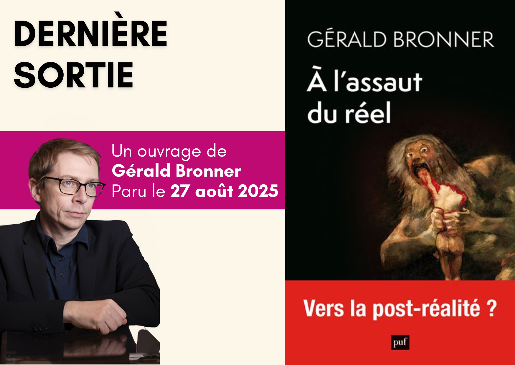 Le 27 août, Gérald Bronner a publié À l'assaut du réel, aux Presses Universitaires de France.